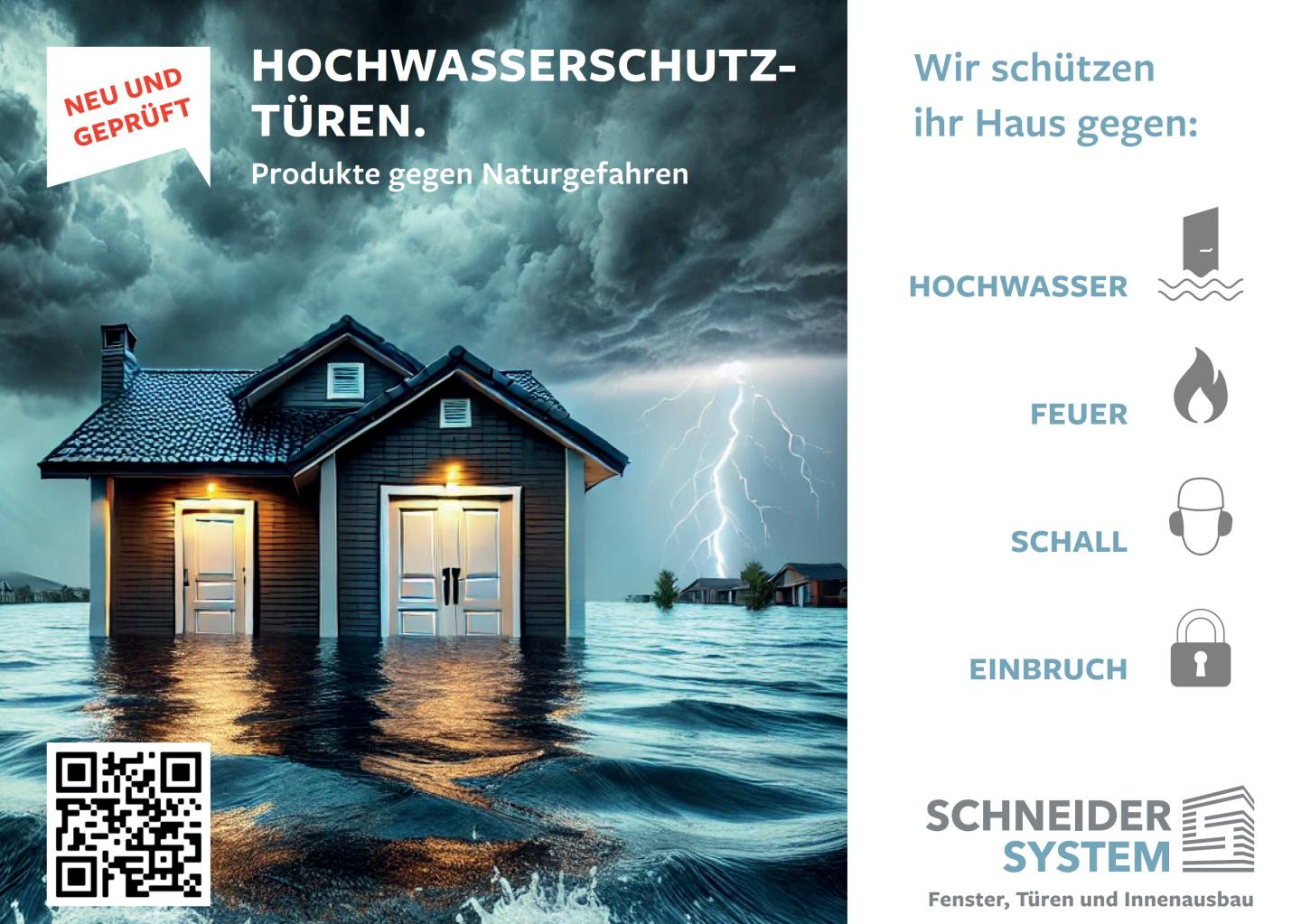 Die Gefahr von Wetterextremen nimmt zu – sowohl in der Schweiz als auch in ganz Europa. Hausbesitzer sind zunehmend durch Hochwasser- und Hagelschäden bedroht, die nicht nur hohe Kosten verursachen, sondern auch Unsicherheit stiften. Was kann gegen diese Naturgefahren unternommen werden? Die Schneider System AG hat reagiert und ihr Portfolio um hochwertige Schutzprodukte erweitert.